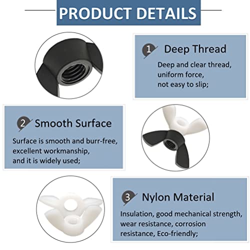 CONPHERON Nylon Dadi ad Alette Galletto Viti Tappo Bulloni Mano Serrare Plastica Nero Dadi a Farfalla M3-M12