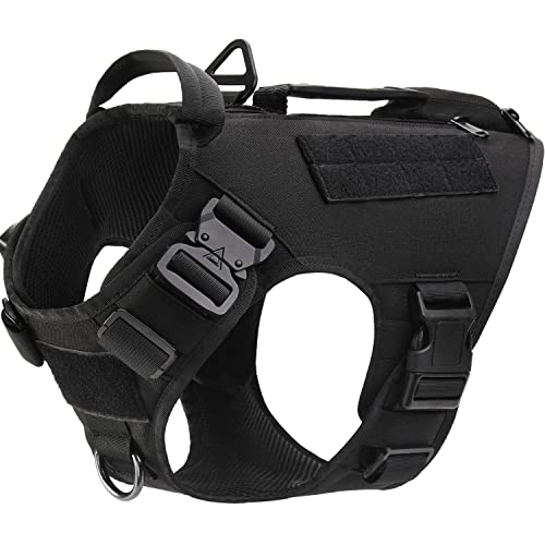 CONQULITY Pettorina tattica per cani K9 con impugnature morbide, resistente e regolabile con fibbie in metallo per cani di taglia grande militare