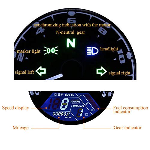 ✔ Tachimetro digitale per moto adatto per la maggior parte delle motociclette con 4 tempi, 2/4 cilindri (impostazione predefinita come 1 cilindro dell'impostazione) e ruota da 8-22 pollici