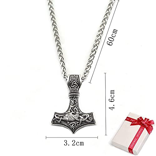 ღ Dimensioni: pendente del martello di Thor 3,2 cm * 4,6 cm. la catena della chiglia è lunga circa 60 cm, il peso è di circa 40 g. la catena della chiglia da 24 pollici è adatta per la maggior parte delle persone.
