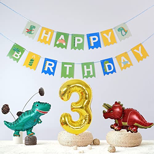 Conruich Kit di Palloncini Dinosauro, Decorazione Compleanno 3 Anni Bambino, Palloncino Gigante Numero 3, Dinosauro Decorazioni Festa di Compleanno Ragazzo, Giungla Tema Party Decorazioni