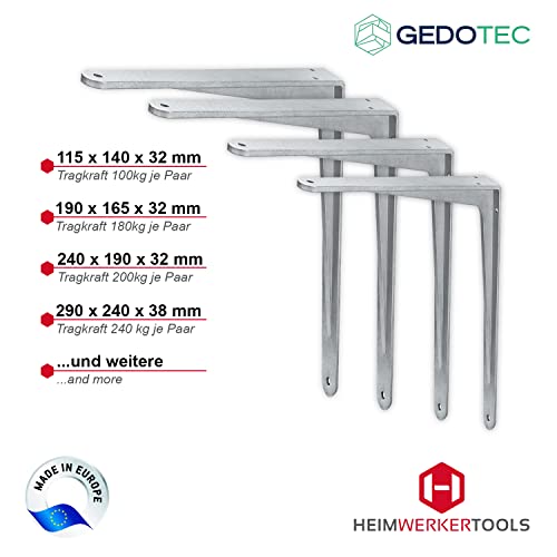 Console carico pesante/Vettore carico pesante/Supporto-mensola SPARTA 7 Grandezze Alluminio naturale Forza portante 80-200 kg - 125 x 150 x 32 mm
