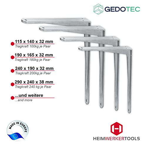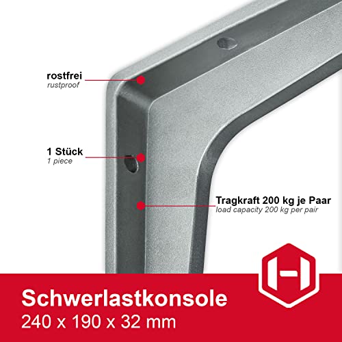 Console carico pesante/Vettore carico pesante/Supporto-mensola SPARTA 7 Grandezze Alluminio naturale Forza portante 80-200 kg - 200 x 250 x 32 mm