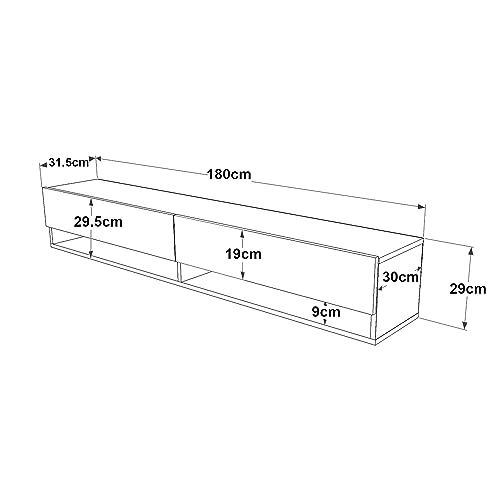 Consolle da Parete (AxLxP) 29,5 x 180 x 31,5 cm con 2 Ante e Scomparti Armadio a Muro con Apertura a Ribalta Mobile Porta TV - Rovere Rustico