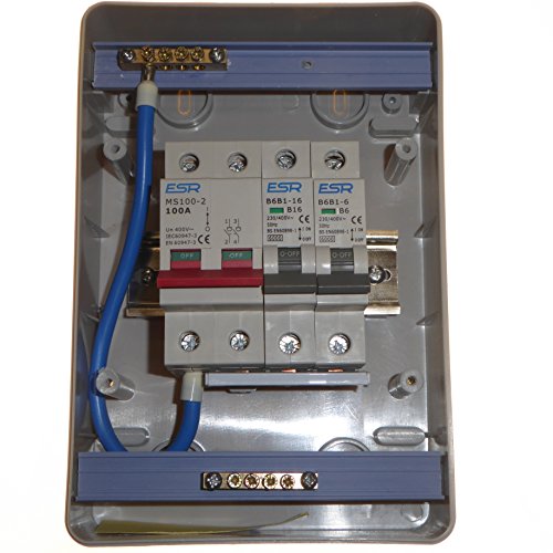 2 Way Consumer Unit 100 Amp Interruttore Isolatore Principale con 6 Amp e 16 Amp Tipo B MCB Interruttori Garage Capanno