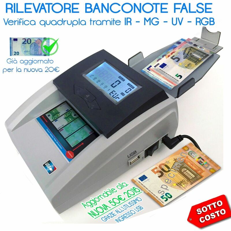 MONEY DETECTIVE 2016 -RILEVATORE DI BANCONOTE FALSE AGGIORNABILE ALLA “SERIE EUROPA”. NIENTE PIU' BANCONOTE FALSE CON QUESTO SPLENDIDO RILEVATORE DI BANCONOTE FALSE PROFESSIONALE! Ormai l'euro è una moneta di facile contraffazione e purtroppo nella fretta, vi capiterà sicuramente di accettare soldi dai clienti, dando uno sguardo troppo frettoloso, sommario. Alla fine vi sarà capitato di trovarvi con tagli da 50, 100, 200 o addirittura 500 Euro Falsi! Da oggi con questo fantastico RILEVATORE DI BANCONOTE FALSE E CONTABANCONOTE, NON AVRETE PIU' QUESTI PROBLEMI! Il suo funzionamento è veramente semplice, infatti basterà passare la banconota nel rivelatore e grazie al meccanismo di scorrimento, saprete subito se il denaro è contraffatto oppure no. In pochissimi istanti permette di controllare la veridicità di banconote di ogni taglio e di molte valute. Inoltre, comodissimo, è possibile decidere la direzione di uscita delle banconote (o sul retro, grazie al comodo raccoglitore in