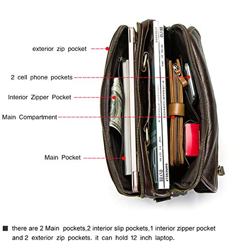 Contacts Cuoio genuino Mens Messenger Crossbody Borsa a tracolla Viaggi 12"iPad Borsa Caffè, caffè, taglia unica