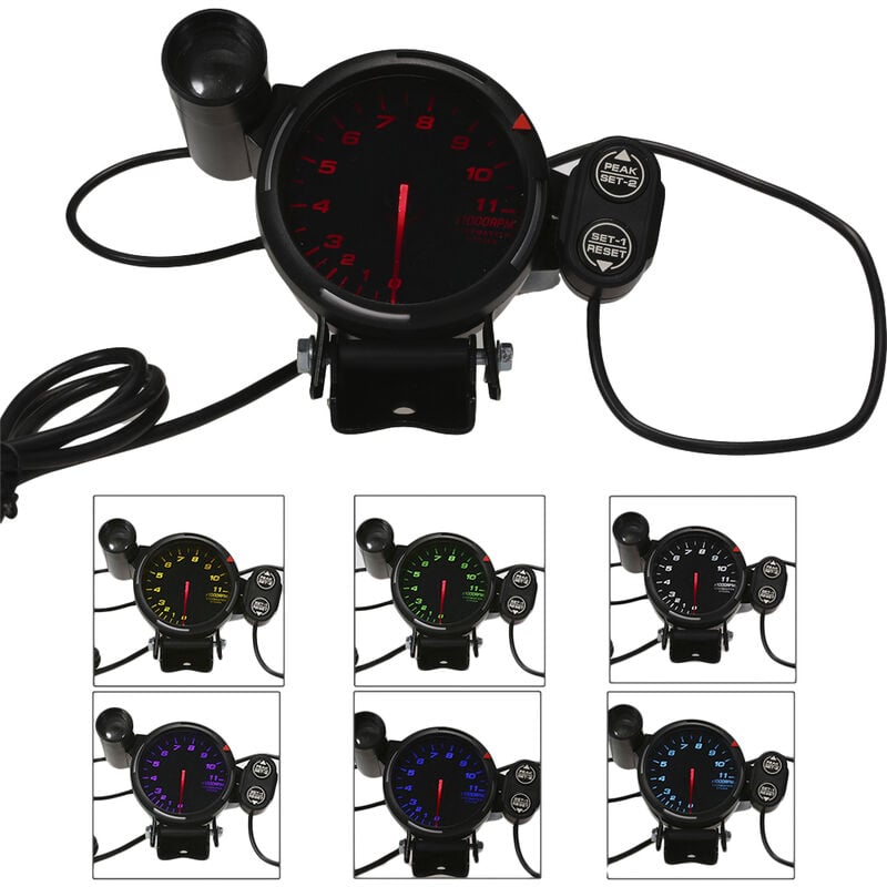 Caratteristiche: Diametro da 3,5 ", con quadrante nero, lente affumicata e luce di sfondo a LED super brillante: misura da 0 a 11.000 RPM, il numero di giri è regolabile. Il motore passo-passo è sufficiente per una risposta rapida a tutti i tipi di sport motoristici professionali. il quadrante è invisibile mentre l'interruttore di accensione è spento. Una volta che il commutatore di accensione è acceso, un chiaro display si illumina LED. Fornisce alta precisione nella precisione delle informazioni generate. Colore regolabile, scegli il colore della retroilluminazione secondo la preferenza personale. 7 colori sono disponibili. Specifiche: Colore: Nero Colore chiaro: Blu scuro / Giallo / Rosa / Azzurro / Verde / Rosso / Chiaro, 7 Colori con un calibro! ! Materiale: ABS Indicatore di livello: LED Luce di commutazione: verde Prima e poi rosso. Range di misura: 0 ~ 11.000 RPM Alimentato da: 12V Lunghezza unità interruttore: Circa 5 cm / 2 " Dimensioni dell'indicatore: 7,62 * 3 cm / 3 * 1,2