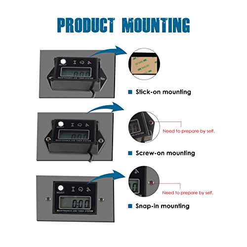 Contagiri digitale con contapassi Runleader, promemoria di manutenzione, richiamo massimo numero di giri, spegnimento utente, uso per ZTR Tosaerba generatore trattore trattore fuoribordo (BLACK)