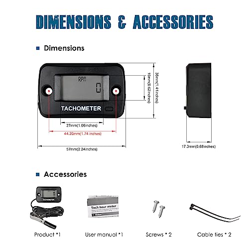 Contagiri digitale Runleader, visualizzazione RPM in tempo reale, record RPM max per trattorino tosaerba Generatore di trattori spazzaneve marino Motore fuoribordo Moto Scooter e dispositivo