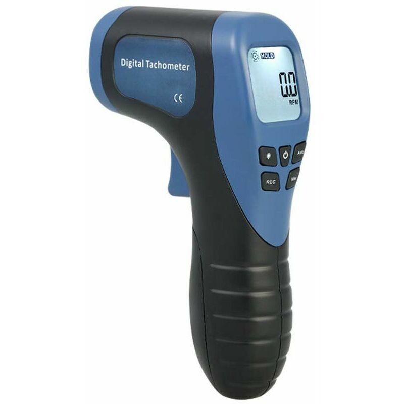 1 giri/min, a 1000~99,999 giri/min. Misura giri/min di motori, macchinari come seghe circolari, velocità di torni e altri dispositivi rotanti. Precisione a +/- 0,02 percento e in grado di misurare a una distanza da 2 a 20 pollici (da 50 a 500 mm);