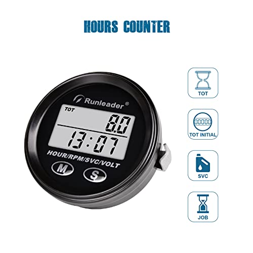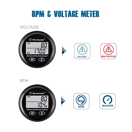 Contagiri/contaore digitale Runleader, misuratore di volt da DC8V a 65V, traccia di manutenzione, display retroilluminato per piccoli motori a gas, funziona su tosaerba