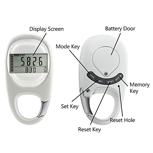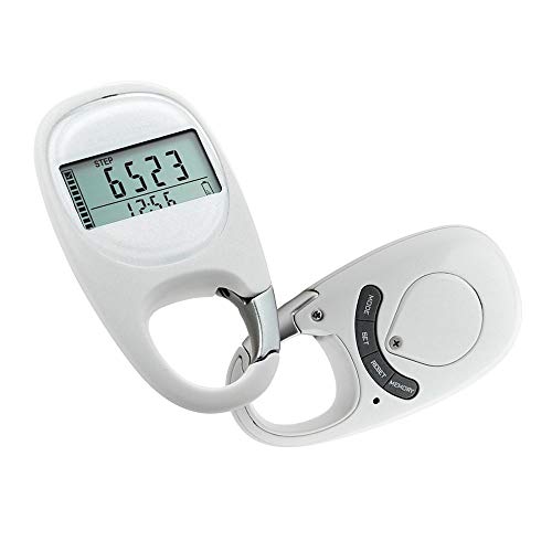 Contapassi Digitale 3D, Pedometro Portatile con Moschettone e LCD Display, Test per Passi, Distanza, Calorie, Contatore Fitness