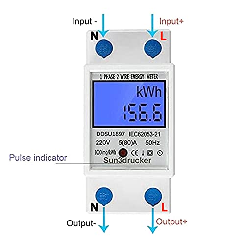 Contatore elettrico a 1 fase, contatore di corrente alternata, 80 A, 220 V, DIN LCD, contatore intermedio/corrente, contatore di consumo, contatore di corrente alternato, contatore di interfaccia S0