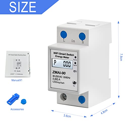 Contatore di Energia Digitale Contatore di Corrente Digitale LCD Contatore Energia Elettrica WiFi Monofase su Guida DIN 220V 60A 50Hz con Controllo APP