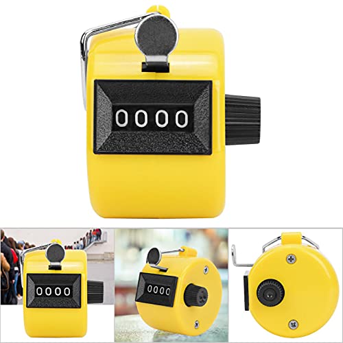 Contatore Manuale, 7 Colori Contatore Manuale Contatori a 4 Cifre Manopola in Plastica Ripristino Contatore Palmare Meccanico Contatore Clicker Contatore Manuale Passo Passo con Gancio(giallo)