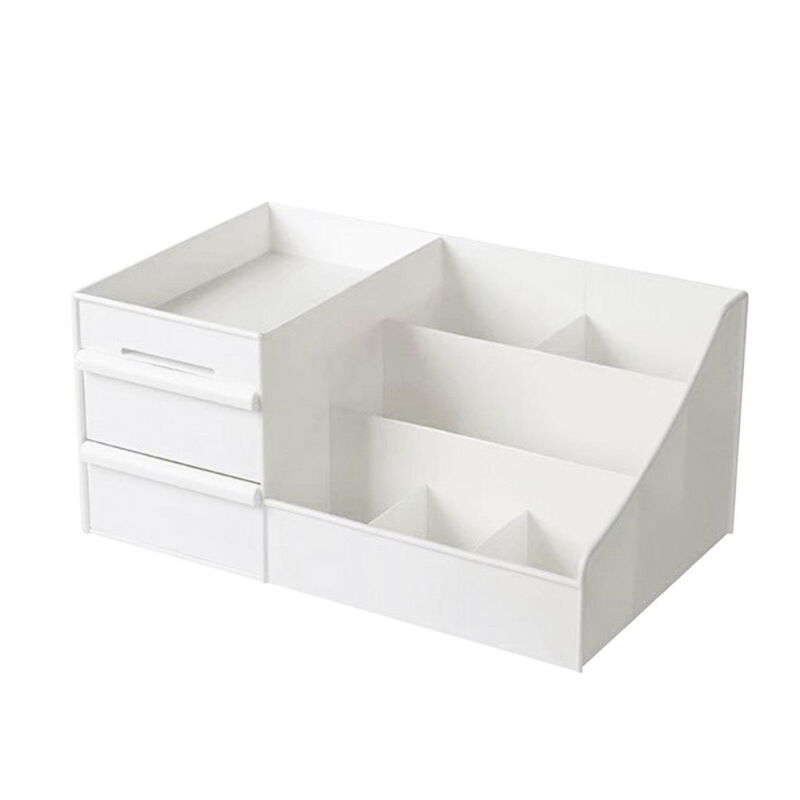 Hai prodotti per la cura della pelle e trucchi in giro per il bagno? Con questo pratico contenitore sarà facile organizzarsi. La scatola è anche elegante e costituisce un elemento attraente nella tua casa. Si adatta bene anche, ad esempio, alla scrivania per strutturarsi tra penne e gomme! - Pratico contenitore - Si adatta in bagno o sulla scrivania - Metti in ordine la casa Specifiche: Colore bianco Materiale: plastica Dimensioni: 10 x 22 cm x 10,3 cm