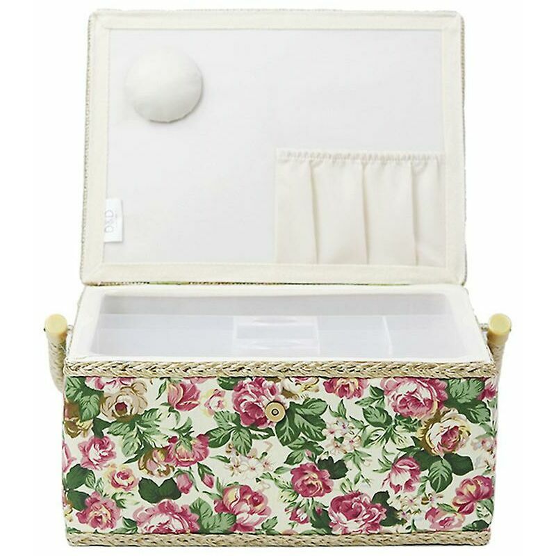 Specifiche: motivo con stampa a rose, più vintage e bello. Le grandi dimensioni ti consentono di mettere più oggetti, come aghi, forbici, ricami, ecc. Realizzato in tessuto di alta qualità, morbido, pregevole fattura, resistente e leggero. Con struttura in legno massello, facile da trasportare. Adatto per casa, viaggi, campeggio, ecc. Nome articolo: scatola portaoggetti Materiale: tessuto + struttura in legno massello Caratteristiche: resistente, portatile, di grande capacità