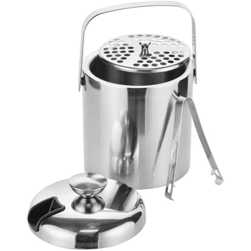 Riempite il secchiello del ghiaccio della HI con ghiaccio e bevande per una festa, una cena o usatelo come pratico accessorio per il vostro bar di casa. Il coperchio ha una comoda apertura per le pinze e il secchio ha una comoda griglia sul fondo per tenere separati l'acqua di fusione e i cubetti di ghiaccio. Con il coperchio chiuso, i vostri cubetti di ghiaccio dureranno pi� a lungo. Il secchiello � realizzato in acciaio inossidabile lucido e una pinza per cubetti di ghiaccio � inclusa nella consegna. Colore: Argento Materiale (interno): Acciaio inossidabile 304 Materiale (esterno): Acciaio inossidabile 201 Dimensioni: 15 x 20 cm (Diam. x A) Spessore: 0,6 mm Secchiello per il ghiaccio con coperchio e manico La consegna include 1 pinza per cubetti di ghiaccio