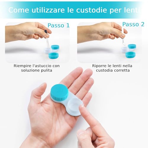 【Buon Design】: "Sinistra" e "Destra" sono chiaramente contrassegnati sul coperchio di ogni scatola di lenti a contatto, che può essere chiaramente separato ed è molto comodo da usare. Il porta lenti a contatto ha un design ad arco circolare. Ogni bordo è levigato senza sbavature. È quindi un contenitore perfetto per mantenere le lenti a contatto pulite e chiare.
