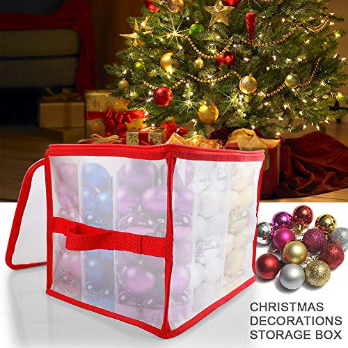 Dimensioni: la dimensione della scatola natalizia è di 32 x 25 x 25 cm, che può contenere luci natalizie e altri oggetti. La dimensione di ogni scomparto con divisorio è di 8 x 8 cm, che è sufficiente per mettere palle di Natale e altre decorazioni.