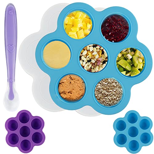 Contenitore per Pappe ACTOYS 2 Pezzi Contenitore Pappa Freezer, Vassoio in Silicone per Alimenti Neonati, Vasetti per la Conservazione delle Pappe Senza BPA per Gelate, 7x60ml (Blu-Viola)