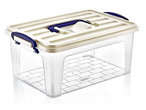 Contenitore in plastica trasparente con coperchio, maniglia e coperchio con clip di chiusura, plastica, 9 Litre