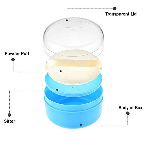 Contenitore in polvere di talco, con setaccio e soffi di polvere, colore blu, per uso domestico e da viaggio