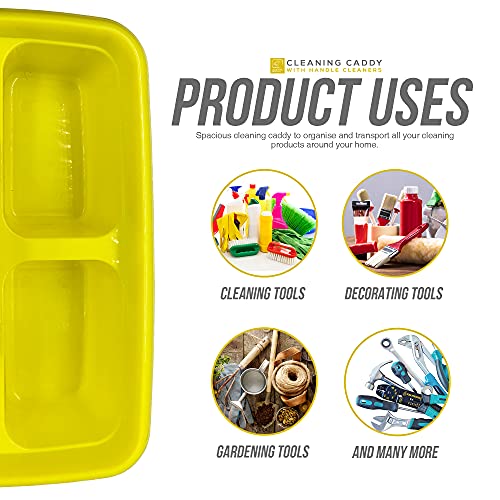 Contenitore per la pulizia con manico e impugnature per il trasporto, ideale da tenere sotto il lavandino da cucina per la pulizia, detergenti, organizer per attrezzi, 2 pezzi, giallo