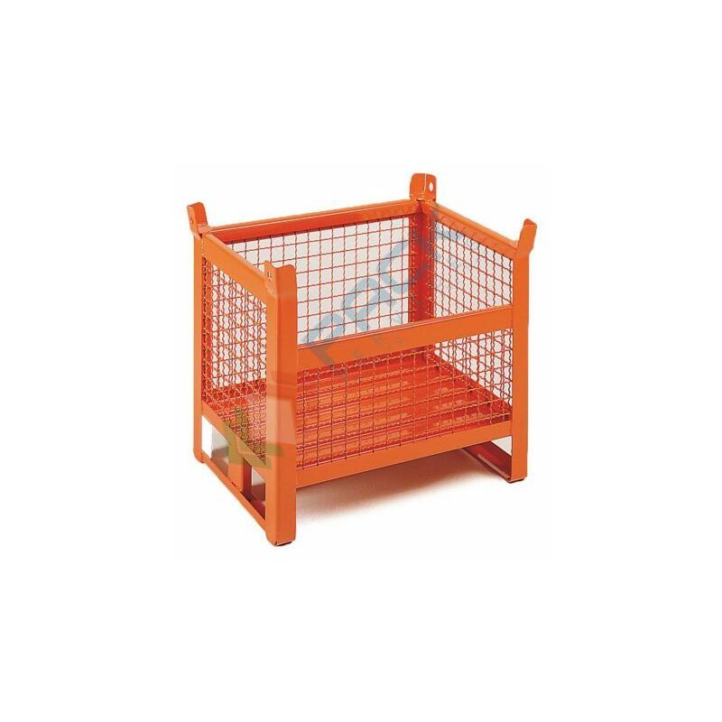 Cassone in ferro in rete metallica, 2 slitte su lato corto, mis. 800 L x 600 P x 530/595 H mm, portata 700 Kg. Parete lato lungo 3/4. La verniciatura viene realizzata con polvere poliestere per esterno a forno 190°. Colore arancio RAL 2004. Contenitore metallico con slitte ideale per il trasporto e stoccaggio di materiale sfusi e per la raccolta di rifiuti industriali presso industrie e magazzini. Super robusto e resistente. I nostri contenitori in lamiera garantiscono la massima facilità di utilizzo ed aumentano la produttività all'interno dell'impresa. Cassoni in metallo in rete 2 slitte con pareti e fondo realizzati con una lamiera particolarmente pesante, che assicura una perfetta funzionalità e resa del contenitore stesso anche nelle condizioni di utilizzo più critiche. La loro struttura robusta consente di sopportare carichi di materiali medio / leggeri. Le ceste metalliche industriali sono impilabili, caratteristica molto importante a magazzino perchè consente di ridurre gli