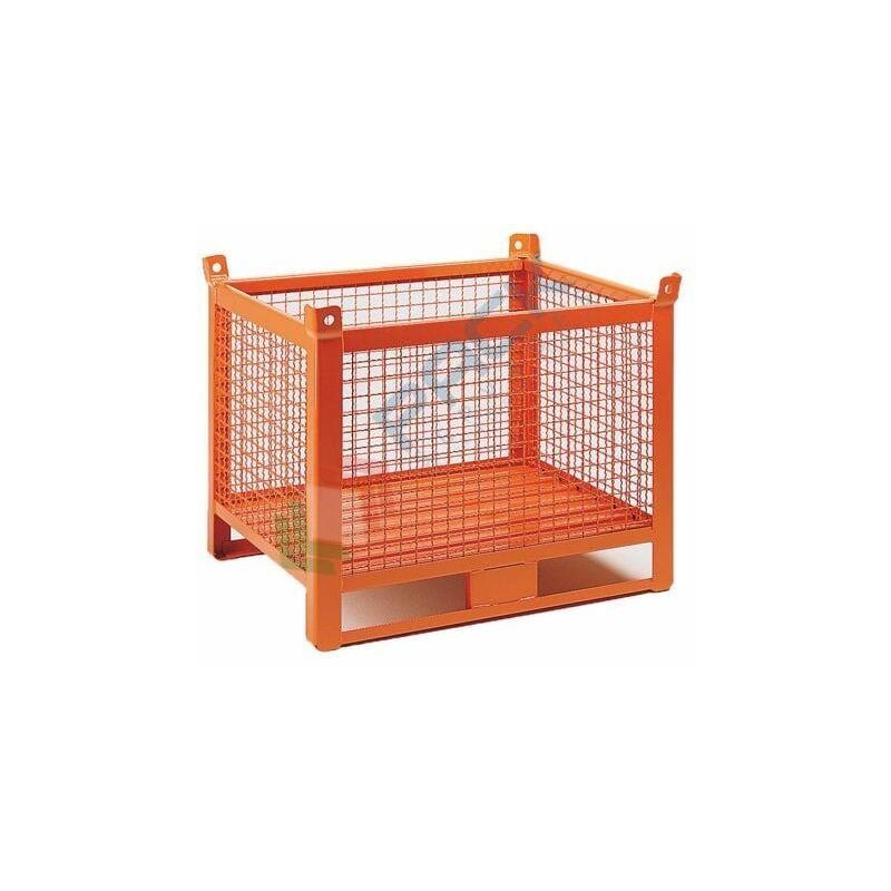 Cassone in ferro in rete metallica, 2 slitte su lato lungo, mis. 1200 L x 800 P x 630/695 H mm, portata 1000 Kg. La verniciatura viene realizzata con polvere poliestere per esterno a forno 190°. Colore arancio RAL 2004. Contenitore metallico con slitte ideale per il trasporto e stoccaggCassone in ferro in rete metallica, 2 slitte su lato lungo, mis. 1200 L x 800 P x 630/695 H mm, portata 1000 Kg. La verniciatura viene realizzata con polvere poliestere per esterno a forno 190°. Colore arancio RAL 2004. Contenitore metallico con slitte ideale per il trasporto e stoccagge con pareti e fondo realizzati con una lamiera particolarmente pesante, che assicura una perfetta funzionalità e resa del contenitore stesso anche nelle condizioni di utilizzo più critiche. La loro struttura robusta consente di sopportare carichi di materiali medio / leggeri. Le ceste metalliche industriali sono impilabili, caratteristica molto importante a magazzino perchè consente di ridurre gli spazi per lo stoccaggio