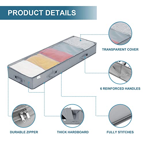 Contenitore Sottoletto Pieghevole Set di 2, Traspirante Scatole Organizzatore Armadio, Contenitori con 6 Manico e Supporto Base, Sacchi Portaoggetti Sotto ilLetto Sacco per Vestiti Trapunte Coperte