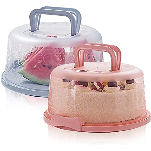 Contenitore per Torte Porta Torte con Coperchio Bloccabile Portadolci con Manico Torta Carrier Box Contenitori per Torte in Plastica Contenitore per Torte Trasparente Portarotole,25x21x13cm,Blu