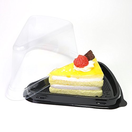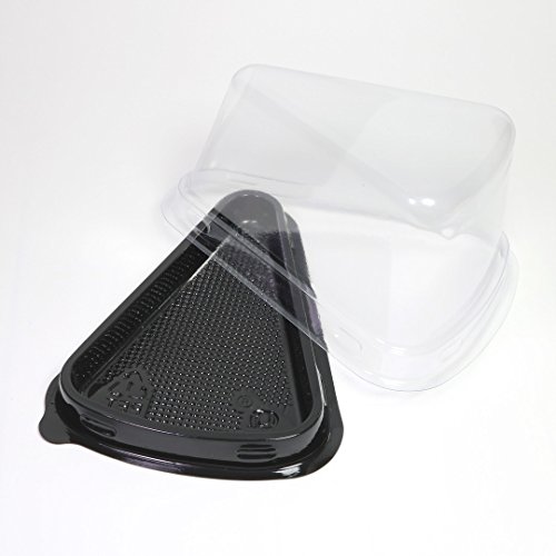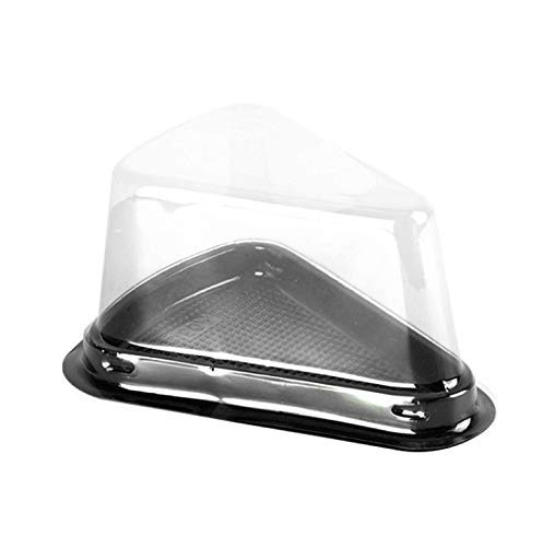 Contenitore trasparente triangolare con base di colore nero, in plastica, per fette di torta, pasticcini, formaggi