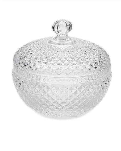 EDG Contenitore in Vetro Rotondo Rombi con Coperchio H11 D12 Colore: Natural