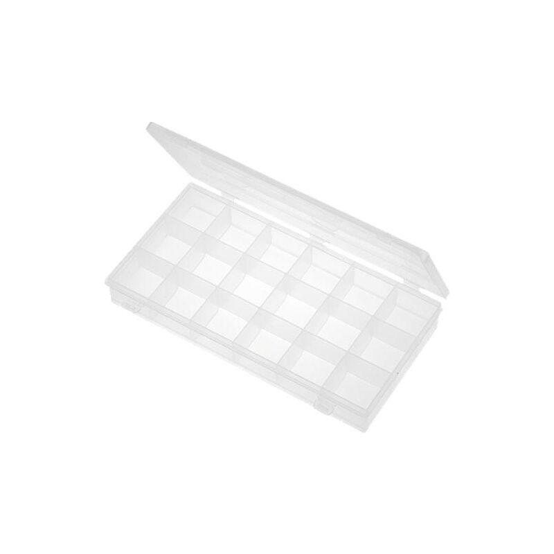 Scatola divisoria di 18 contenitori identici 43x52x37,5mm Colore trasparente Polipropilene Con 3 serrature a scatto Equivalenza con: CM058