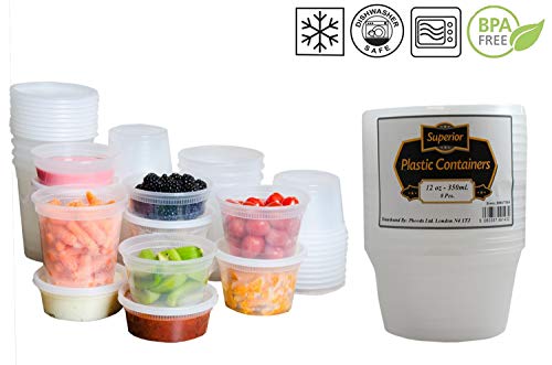 Contenitori per Alimenti con Coperchio, Plastica, 12oz - 355ml, 8 Pezzi