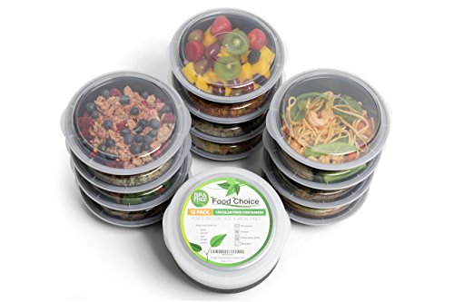 Contenitori per alimenti con coperchio per pranzo, controllo porzioni e conservazione - Impilabili, senza BPA, 1 scomparto, circolari, adatti per congelatore, lavastoviglie e microonde (set da 12)