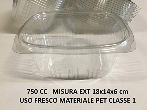 50 CONTENITORI per Alimenti USA E Getta (VASCHETTE MONOUSO) con Coperchio in Pet Classe 1 (750cc)