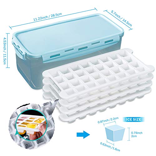 Set di contenitori per cubetti di ghiaccio in silicone con coperchio ermetico, 4 confezioni da 128 cubetti di ghiaccio trapezoidali (A blue)