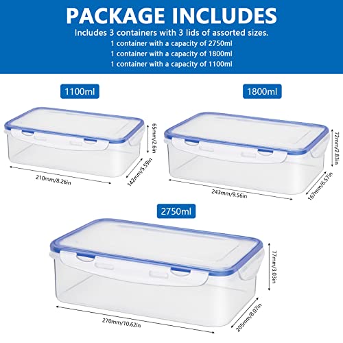 Contenitori Ermetici per Alimenti, 3 Pcs(2.75L+1.8L+1.1L) Contenitori in Plastica con Coperchio per Cibo/Pasta, Set Contenitori per Frigorifero Senza BPA, Contenitori per Cucina Adatto per Microonde