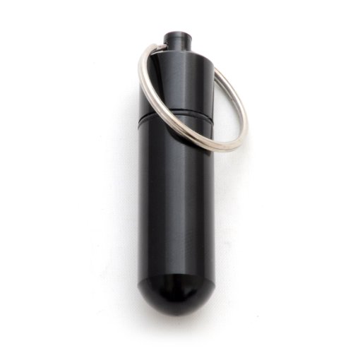 Set di 2 contenitori per pillole, capsula in alluminio, portachiavi mini, impermeabile, colore nero, altezza: 48 mm