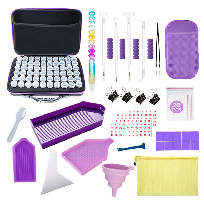 Confeziona tutto in una scatola - Le 60 bottiglie sono dotate di una base in schiuma che organizza perfettamente tutti i tuoi esercizi. Il tappo a vite protegge il trapano da fuoriuscite durante lo spostamento. Una borsa a rete abbastanza grande da contenere i tuoi strumenti accessori per la pittura diamantata. 【Game Changer】 L'imbuto pieghevole in silicone ti consente di riempire i tuoi diamanti in modo più sicuro e semplice senza traboccare. Facile da usare, trasportare e riporre. 【Utilità funzionale】 Viene fornito con una spazzola diamantata e 3, 6, 9 supporti per diamanti, particolarmente adatti per diamanti di grandi dimensioni dello stesso colore allo stesso tempo;
