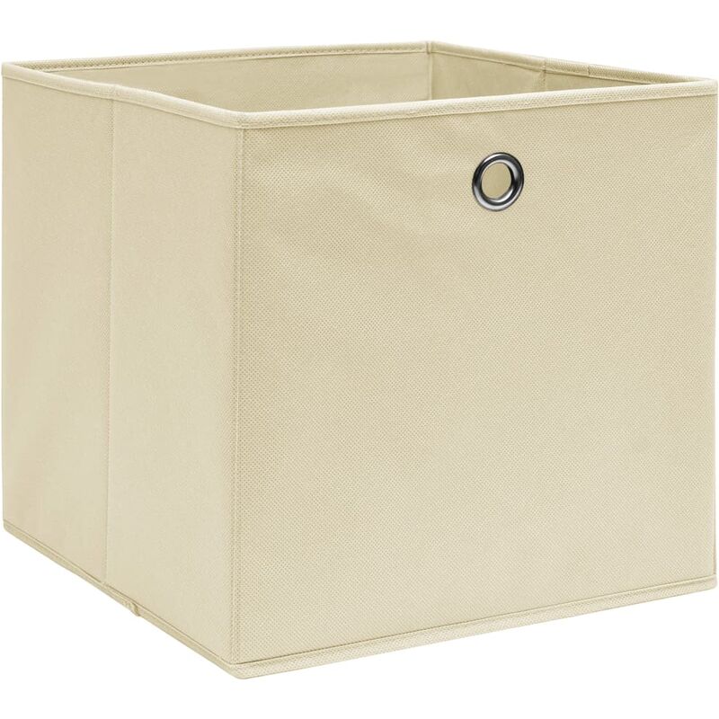 Questi contenitori pieghevoli alla moda si adatteranno perfettamente a qualsiasi tipo di scaffale. Queste scatole sono realizzate in tessuto non tessuto, che è straordinariamente resistente. Ciascun contenitore offre un ampio spazio per riporre sciarpe, calzini, biancheria intima, e così via. Quando non sono in uso, i contenitori possono essere piegati per risparmiare spazio. Ciascuna cesta portaoggetti dispone di un comodo occhiello in metallo, che dona un tocco di eleganza e vi consente di estrarla facilmente dal vostro guardaroba. Colore: crema Materiale: Tessuto non tessuto Dimensioni: 28 x 28 x 28 cm (L x L x A) Pieghevole La consegna include: 4 Scatole portaoggetti SKU: 325215