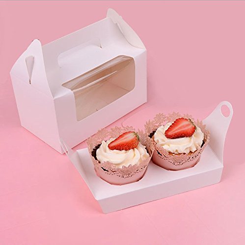 Set di 12 contenitori trasportabili per cupcake, scatole con 2 inserti in cartone e finestrella in PVC bianco