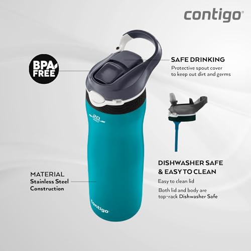 Contigo Bottiglia Acqua Ashland Chill Autoseal, 590ml, Borraccia Termica in Acciaio Inossidabile, con Cannuccia, priva di BPA, Bottiglia da Palestra a Tenuta Stagna