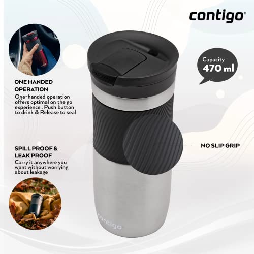Contigo Tazza Termica Byron Snapseal, 470ml, Tazza Caffè da Viaggio in Acciaio Inossidabile, Contenitore Termico a Tenuta Stagna, con Coperchio Privo di BPA, Acciaio inox(Stainless Steel)