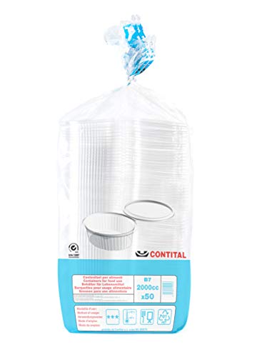 CONTITAL B07 | Contenitori per Alimenti 2000 CC con Coperchio a Cerniera | Vaschette Ovali Monouso in PET | Ideali per Take Away e Conservazione | Vaschette Plastica per Cibo da Asporto | 50 Pezzi