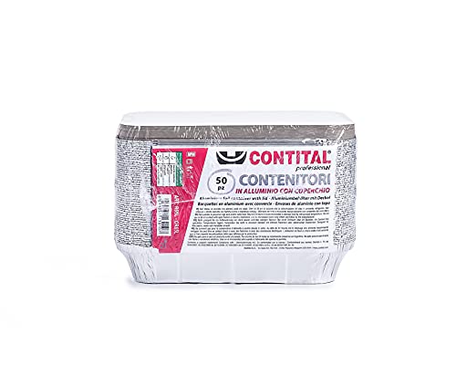 CONTITAL R65L | Vaschette Alluminio 2 Porzioni con Coperchio, Teglie Forno Usa e Getta, Contenitori per Alimenti Monouso - Linea Professionale 50 pezzi