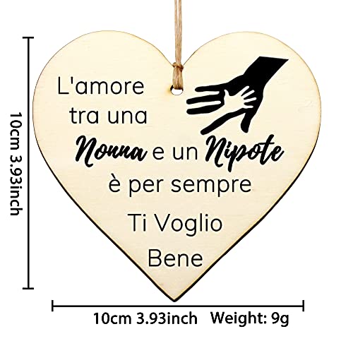 Contletiex L'amore Tra una Nonna e un Nipote è per Sempre-2pcs Targa in Legno da Appendere a Forma di Cuore-dea Regalo per Nonna Nipote